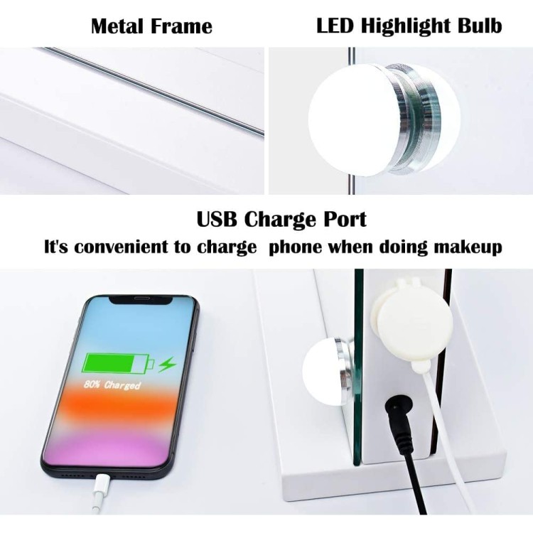 - 【Large Size & USB outlet】: Natilri large hollywood makeup mirror has a perfect large size(22.8"x 18.1"),It's large enough to show your makeup, suitable for dresser and bedroom.USB charge port(12V,1A) on the side allows to charge your smart phone or other USB devices.