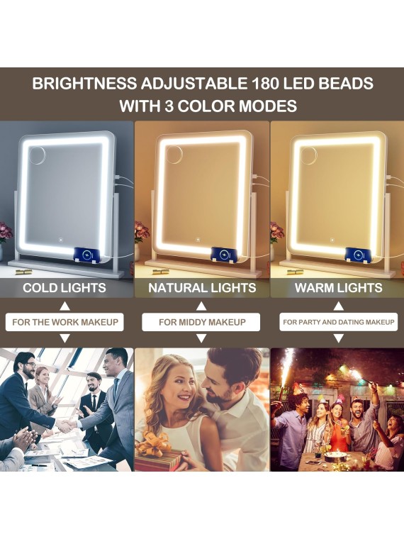 - 【360° Free Rotation】The tabletop light up mirror features a 360° free rotation, allowing you to fix the body of the mirror at any angle you need. This ensures a perfect and comfortable perspective, making it easier and more convenient to enjoy your makeup routine.