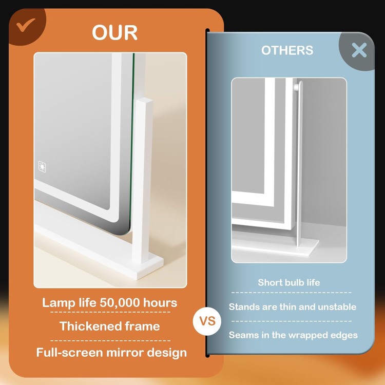 - 【Upgrade brightness】Most of the makeup mirrors with light bars on the market only have 120 light beads, which makes consumers feel that the lighting is not enough. We have improved on this! We have a full 180 light beads light bar per meter,which greatly improving the brightness of the makeup mirror.
