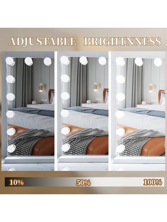 - 【 Ajustable Brightness & 3 Colors Lighting Modes 】- The LED brightness of this hollywood lighted makeup mirror can be changed as you need. This LED makeup mirror provides 3 colors lighting modes so that you can also adjust different brightness to meet your different makeup needs, no matter it is early morning or late night.