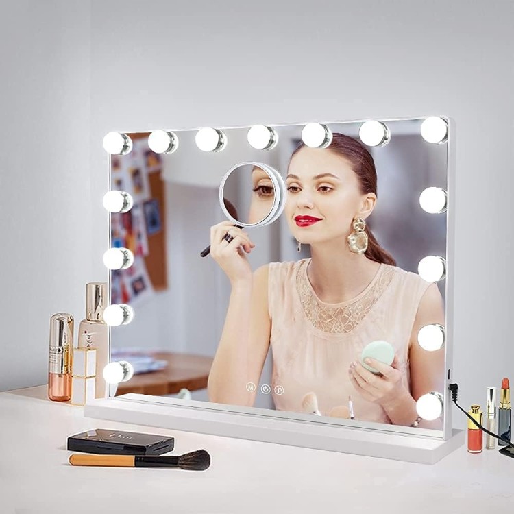 - 【 3 Colors Variable and Brightness Adjustable 】 The white makeup mirror features 3 color temperatures (warm/natural/cold) and 15 dimmable LED bulbs to meet your different usage requirements.